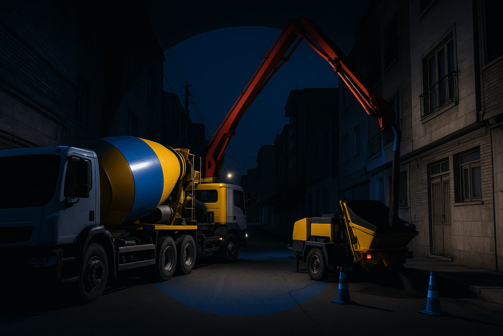 راهنمای بتنریزی شبانه در شرق تهران (اندرزگو و اطراف): از رزرو تا تحویل بیدردسر